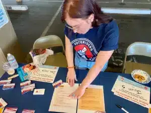 SEPTEMBER 21, 2022 — Phoenix, Arizona — The Arizona Republic covers The Phoenix Indian Center’s voter registration drive where VoterRiders’ Danielle Duarte offered information about Arizona’s strict voter ID laws to urban Indigenous voters.