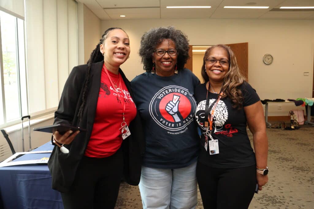 In Georgia, VoteRiders celebrated National Voter ID Month of Action at a Second Chance Month career conference and job fair with Women on the Rise. VoteRiders’ Georgia Organizer & Faith Coordinator provided returning citizens with information about what ID they need to vote in Georgia and how VoteRiders can help them secure documentation for free.