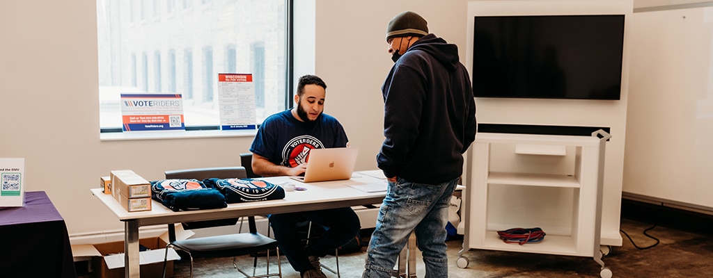 Many families struggle to pay rent. Many must scrape together loose change to put food on the table. Single parents work overtime. Given this economic reality, some people may delay spending money to get a birth certificate or other documentation necessary to get a state ID card. That’s where VoteRiders comes in. As the Wisconsin coalition coordinator, Nick is working nonstop to make obtaining voter ID as streamlined, accessible, and straightforward as possible. He also knows that by helping Wisconsin voters get ID, he’s not only facilitating a passage to vote, he’s also making it possible for individuals to access other life-saving services, like housing.