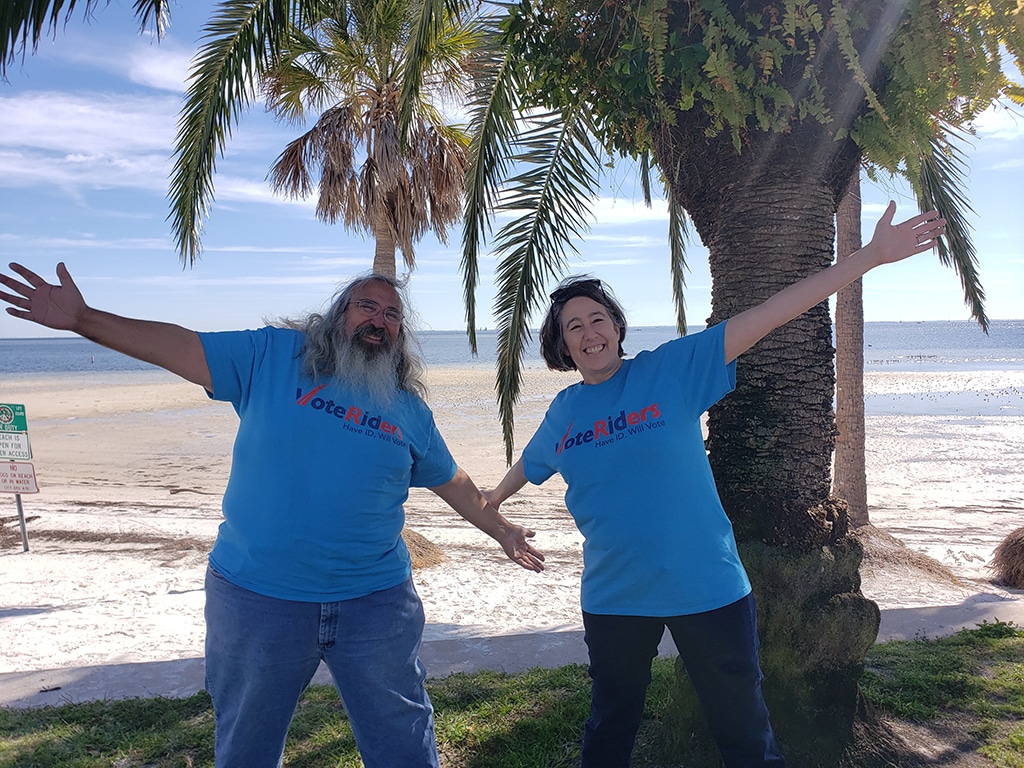 Karen Sherman and Joe Guido are longtime volunteers with VoteRiders in St. Petersburg, Florida. In partnership with local service provider organizations, they focus on helping people in Pinellas County get their ID to vote. “After a long break and conducting work virtually, we’re looking forward to returning to helping voters in person once again on a regular schedule,” said Karen.